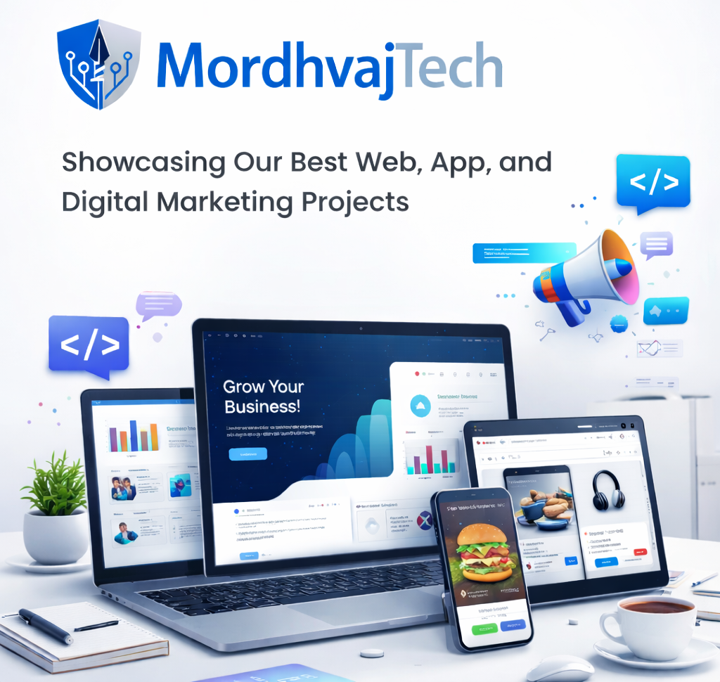 At MordhvajTech, we take pride in delivering innovative and result-driven digital solutions that help businesses grow and succeed in the digital world. Our portfolio showcases a diverse range of projects, including dynamic websites, powerful mobile applications, and impactful digital marketing campaigns.